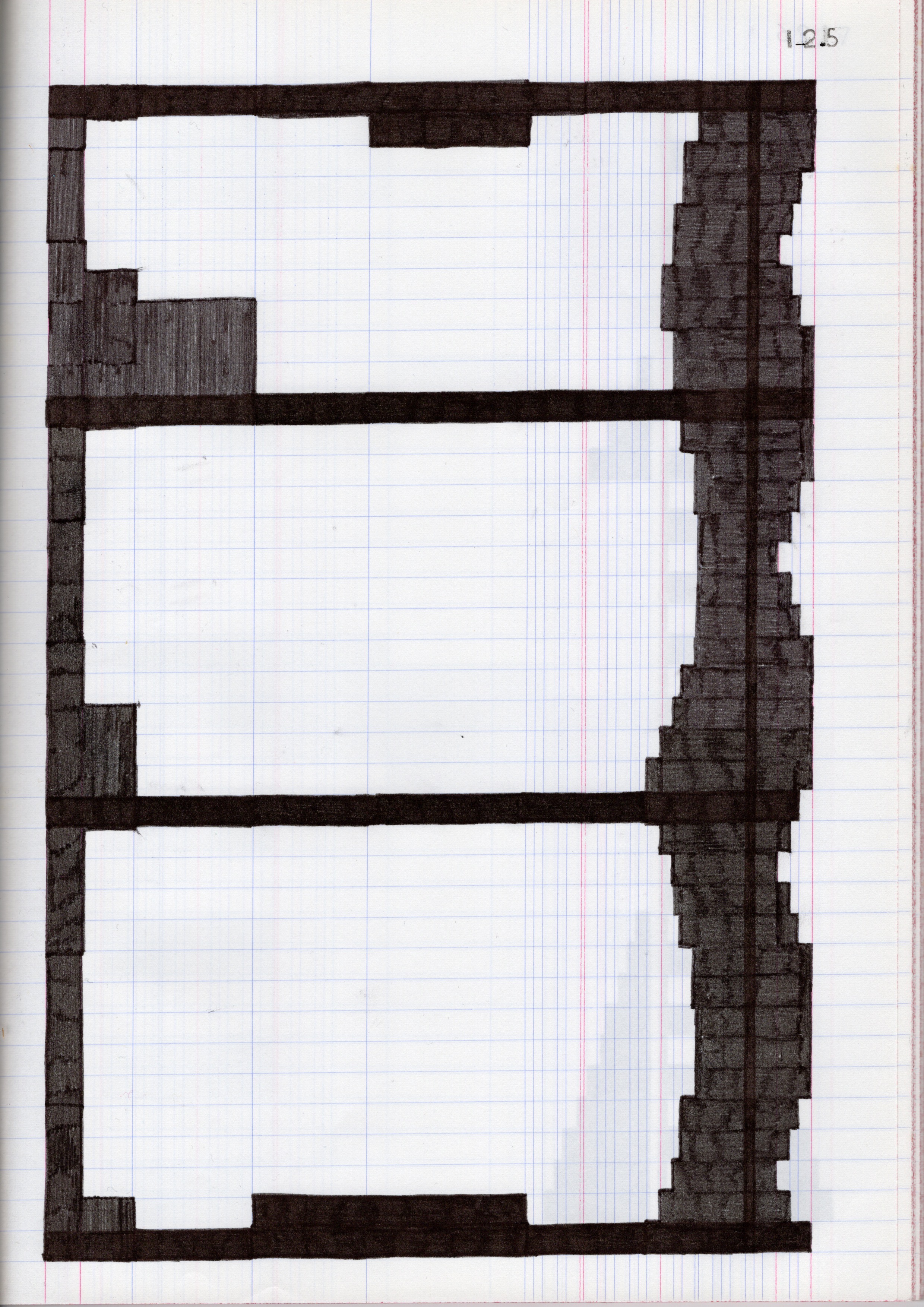 90 black marker drawings on found A4 register book. The grid is incredibly fascinating and asymmetrical.
